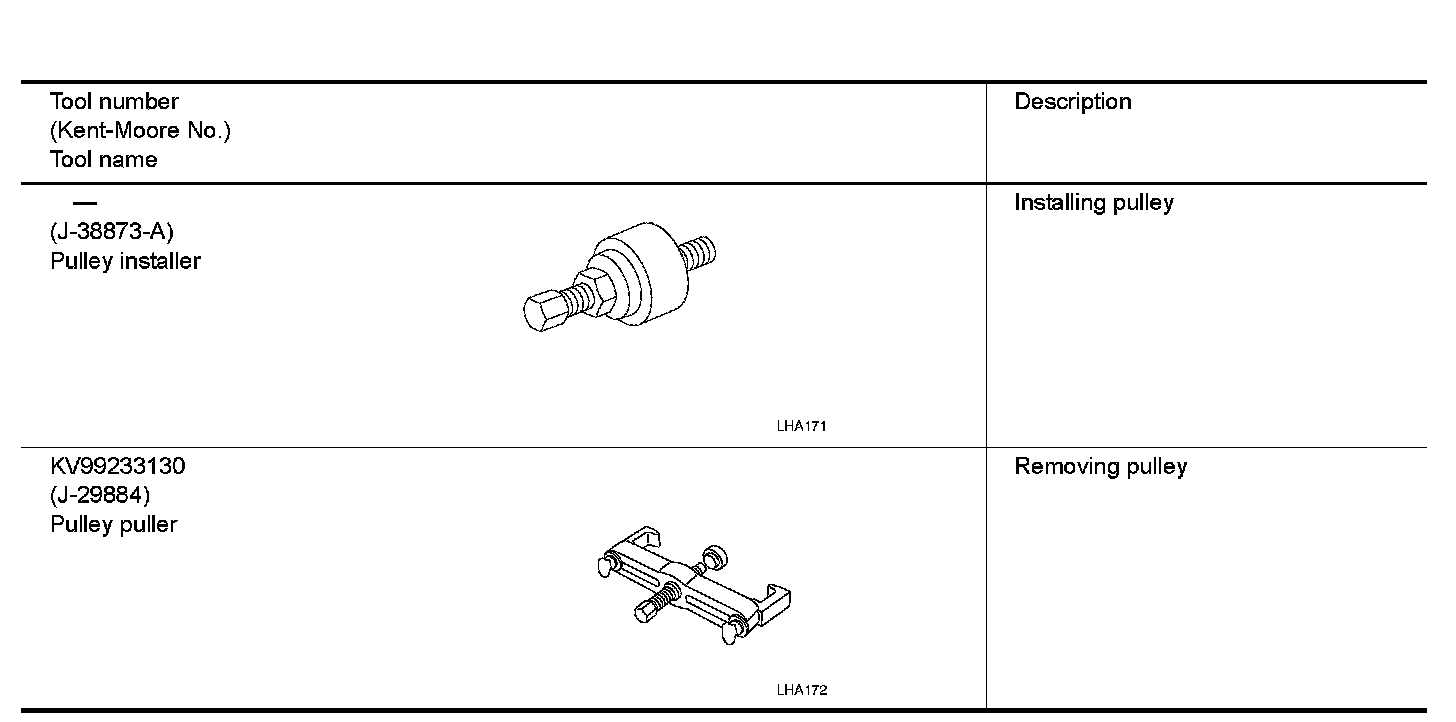 The actual shapes of Kent-Moore tools may differ from those of special service tools illustrated here.