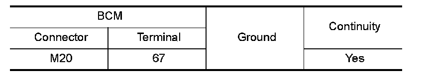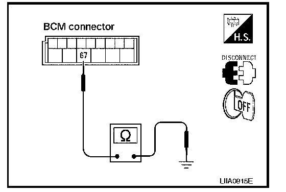 Check continuity between BCM harness connector and ground.