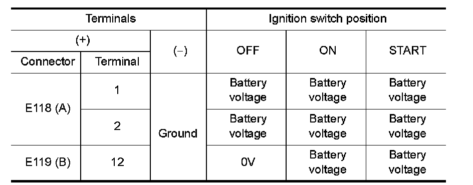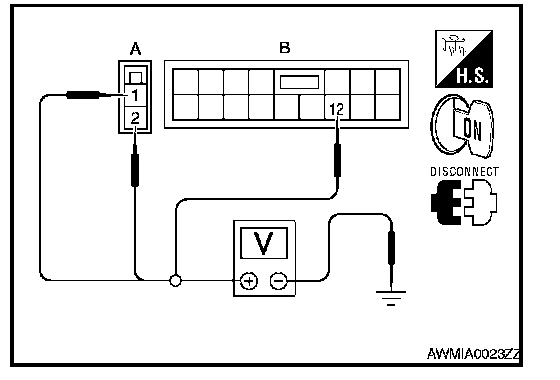 3. Check voltage between IPDM E/R harness connectors and ground.