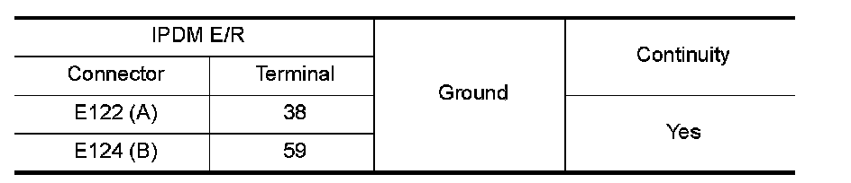 2. Check continuity between IPDM E/R harness connectors and ground.