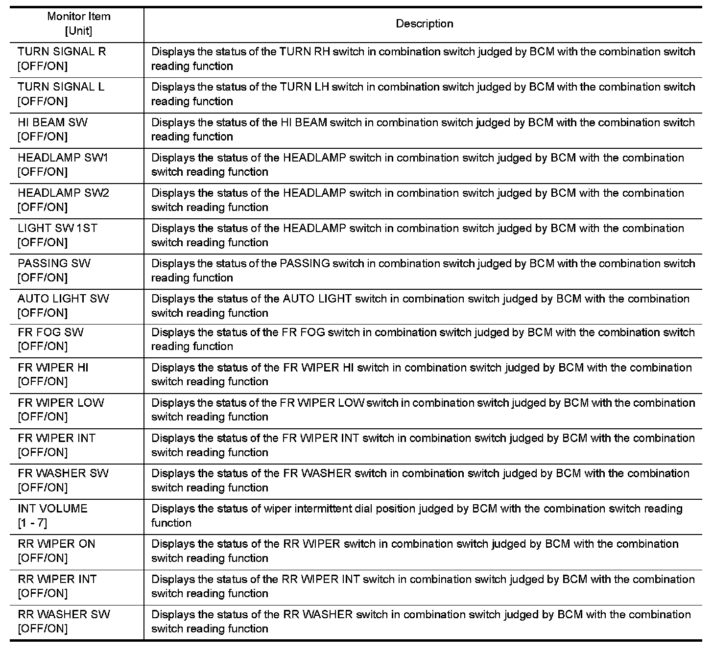 COMB SW CONSULT-III Function (BCM - COMB SW)
