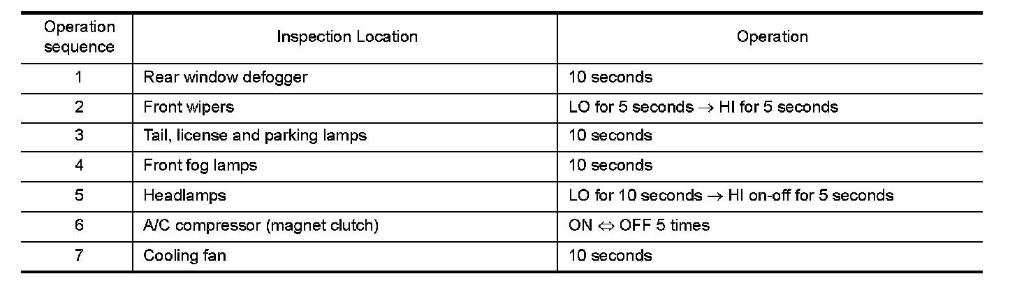 In auto active test mode, the IPDM E/R sends a drive signal to the following systems to check their operation.
