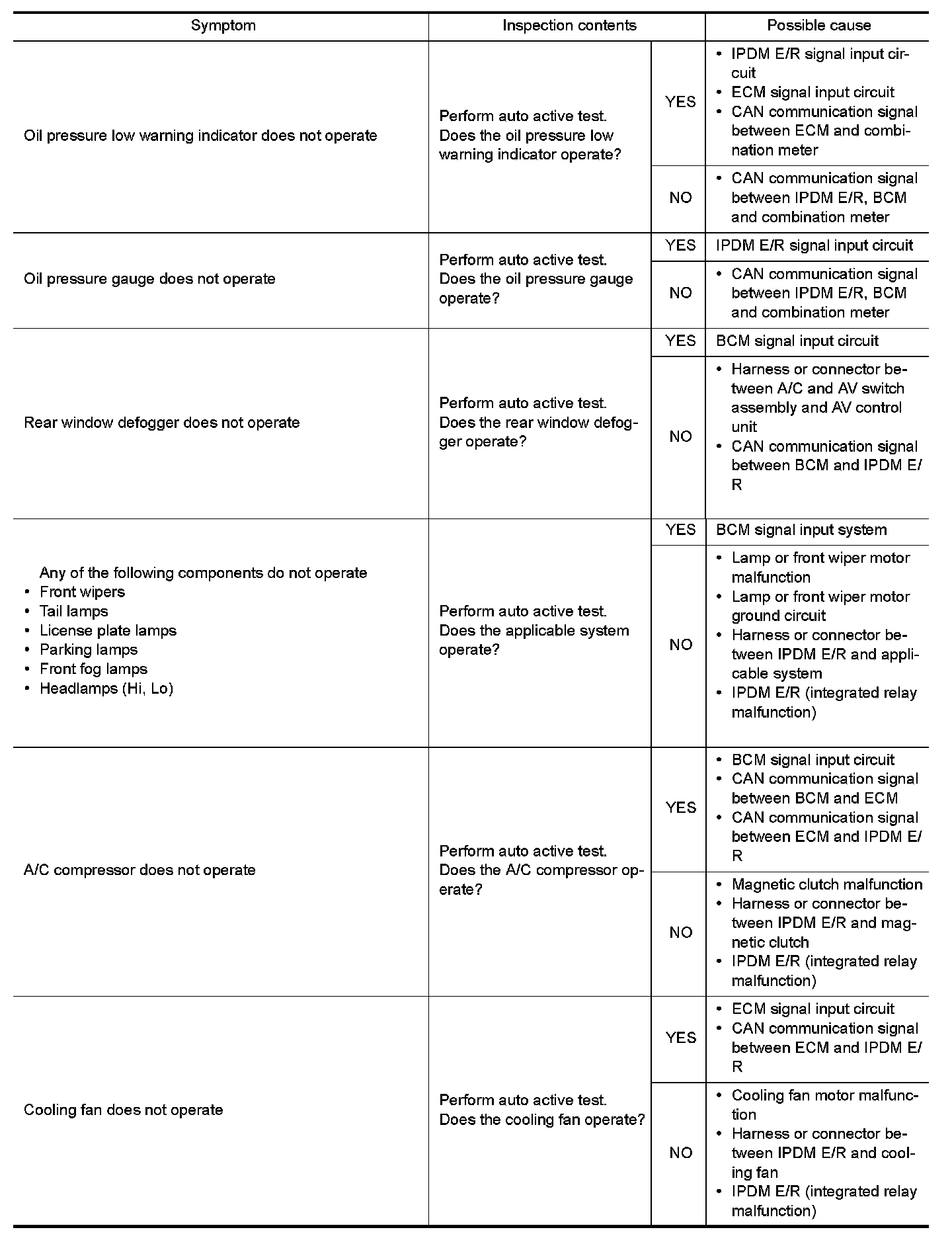 - The auto active test facilitates troubleshooting if any systems controlled by IPDM E/R cannot be operated.
