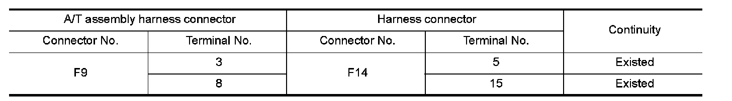 NO - Repair the main line between the A/T assembly and the harness connector F14.