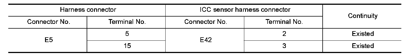 NO - Repair the main line between the harness connector E5 and the ICC sensor.