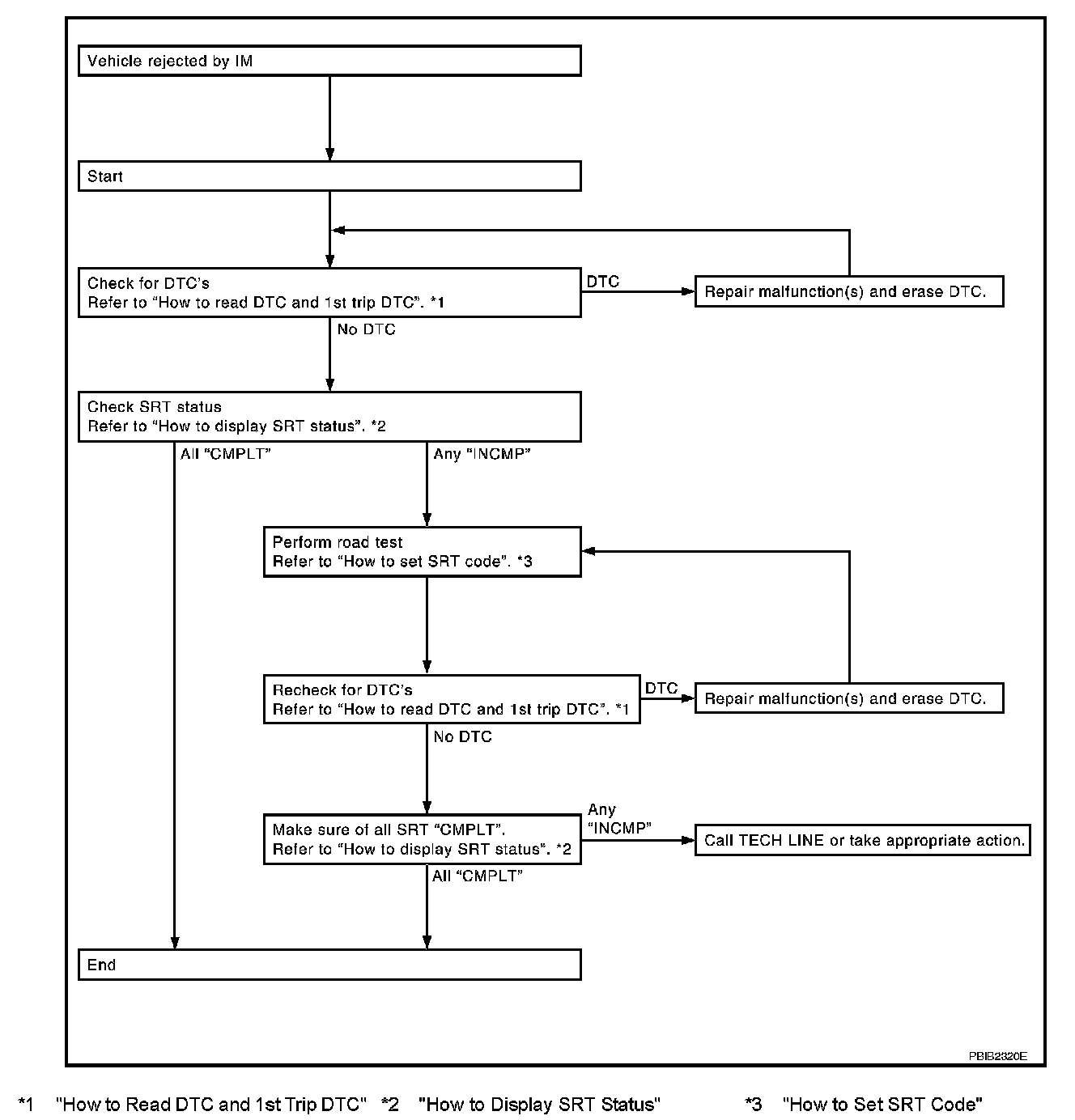 If a vehicle is rejected for a State emissions inspection due to one or more SRT items indicating "INCMP", use the information in this Service Manual to set the SRT to "CMPLT".