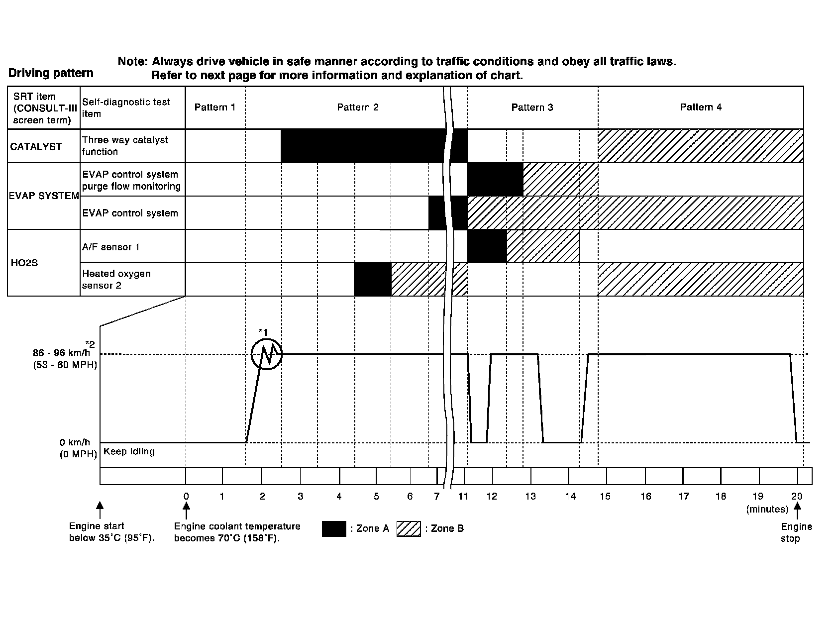 The most efficient driving pattern in which SRT codes can be properly set is explained on the next page. The driving pattern should be performed one or more times to set all SRT codes.