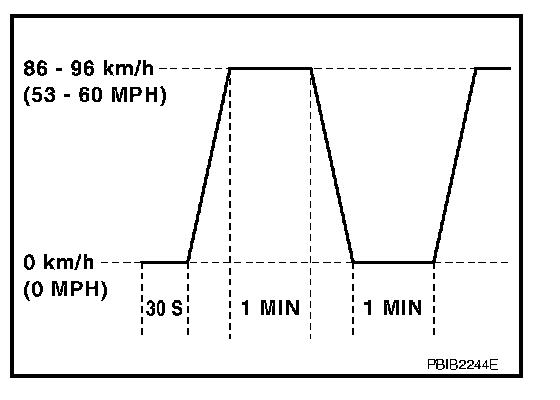 MPH), then release the accelerator pedal and keep it released for more than 10 seconds. Depress the accelerator pedal until vehicle speed is 90 km/h (56 MPH) again.
