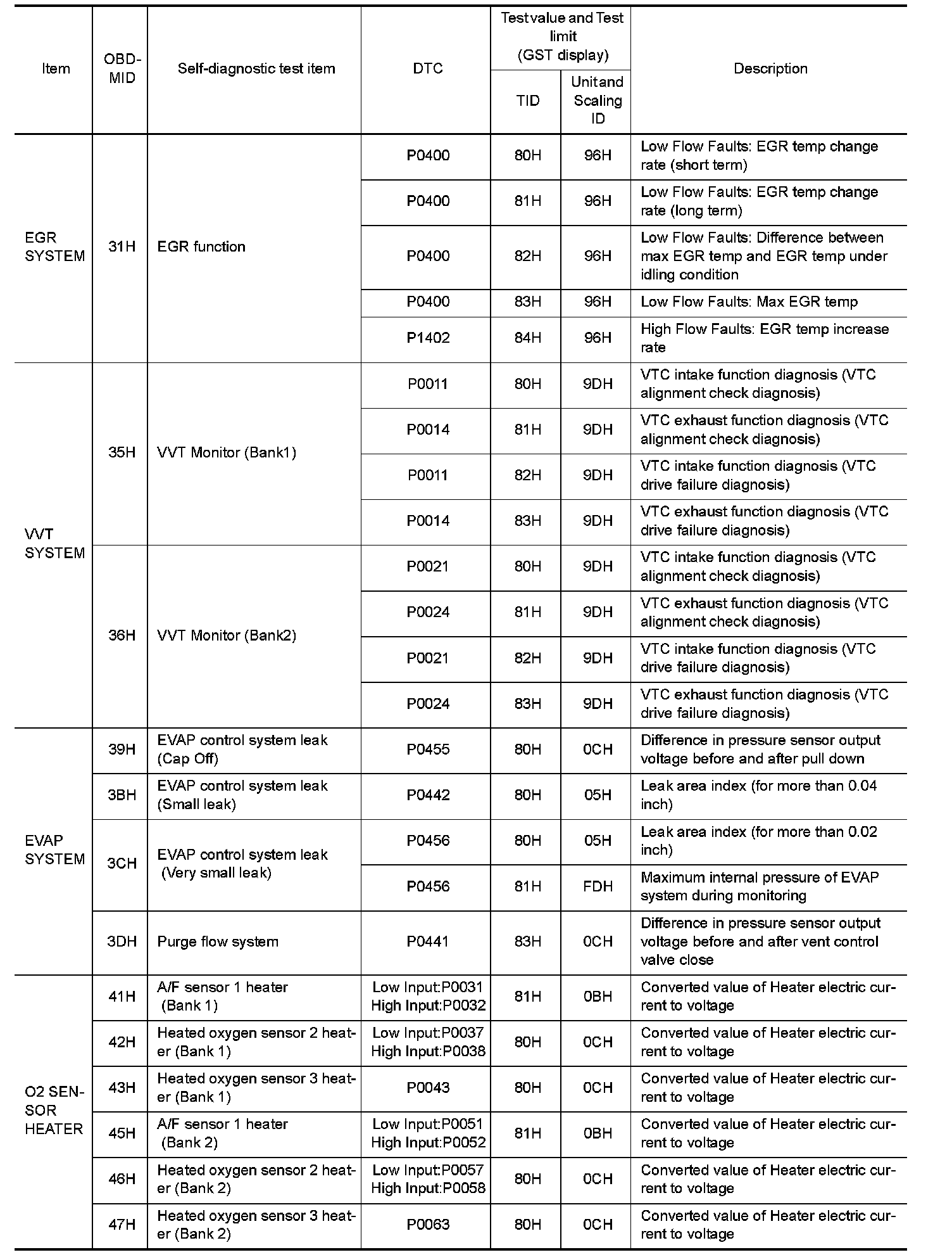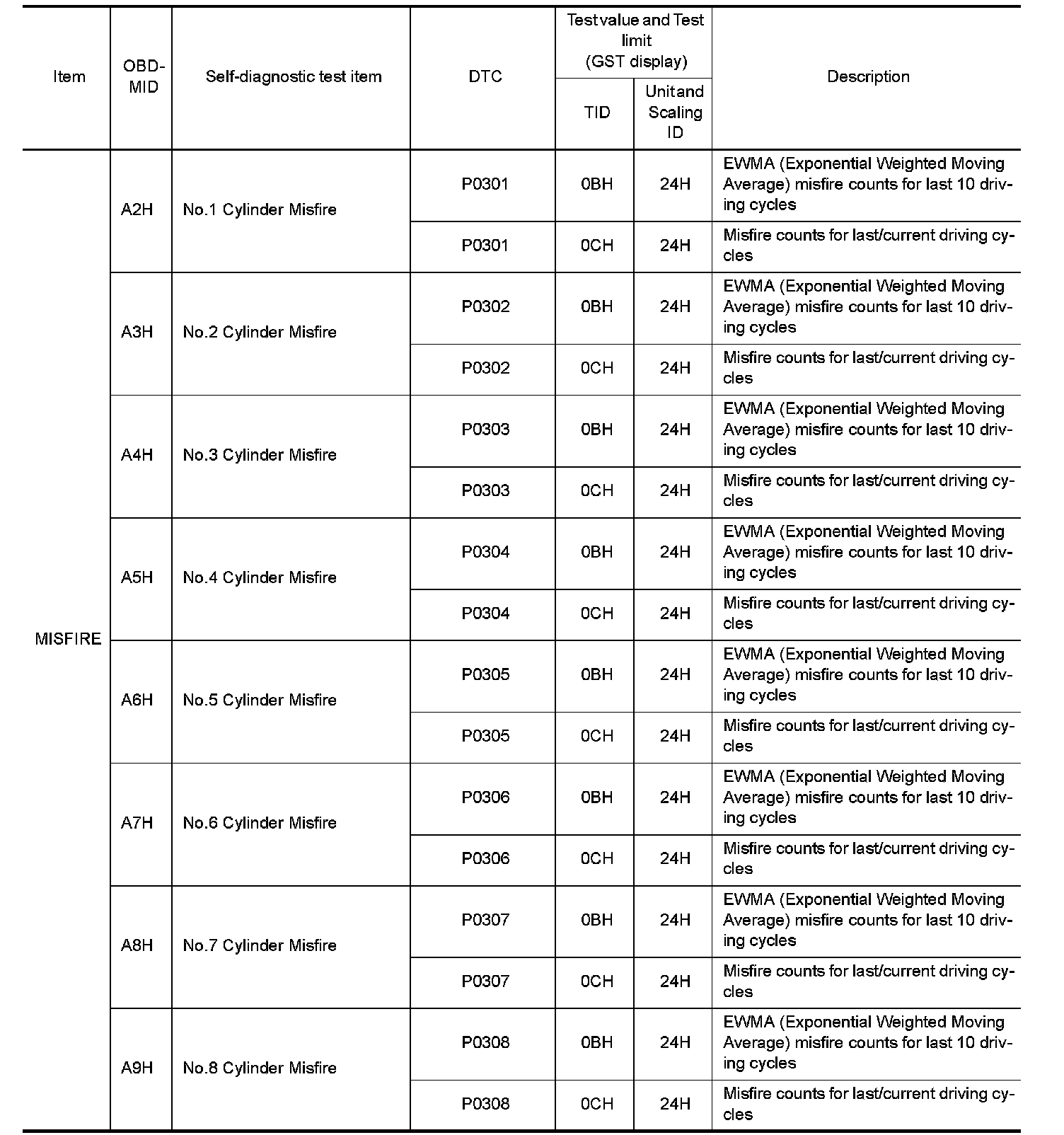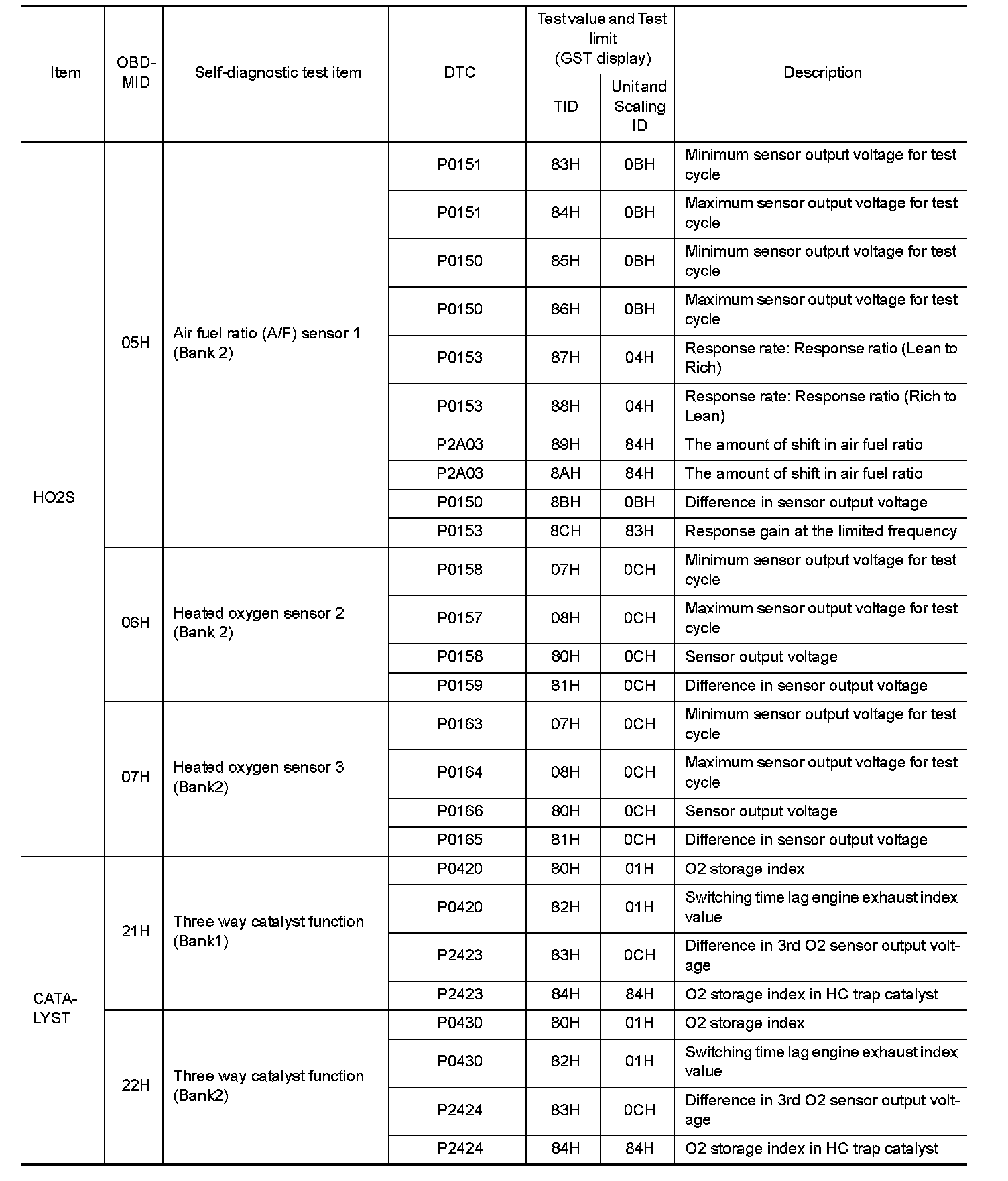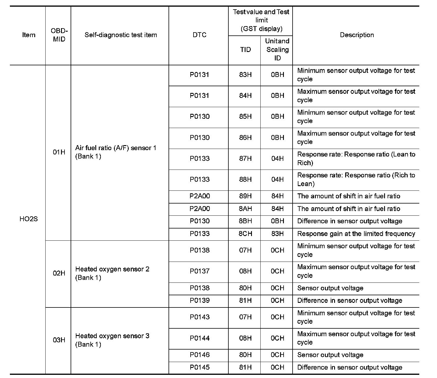 These data (test value and test limit) are specified by On Board Monitor ID(OBDMID), Test ID (TID), Unit and