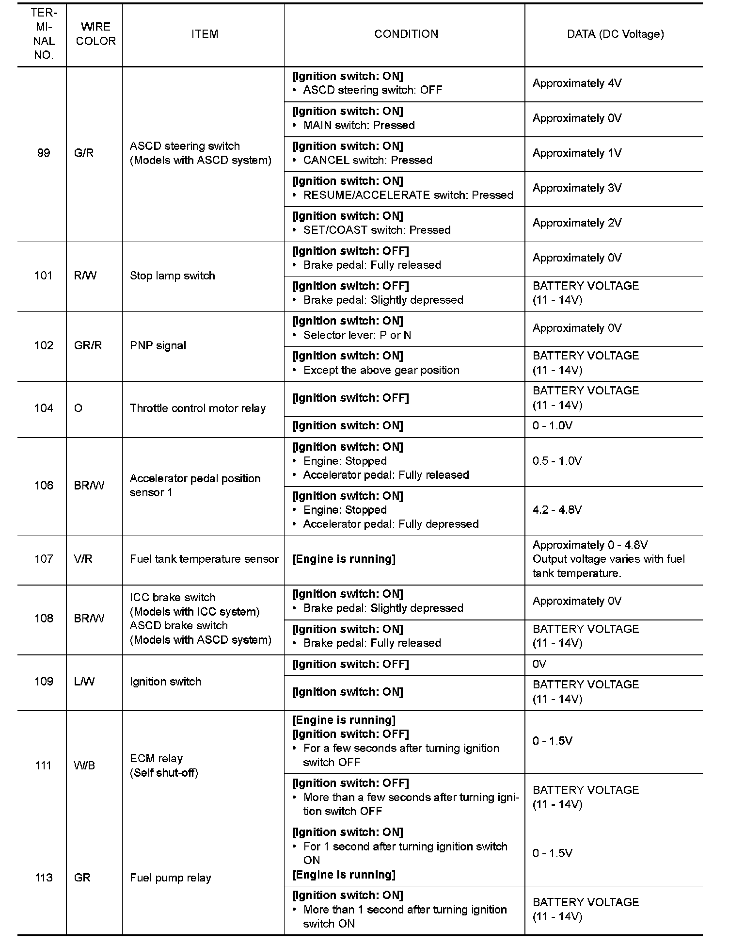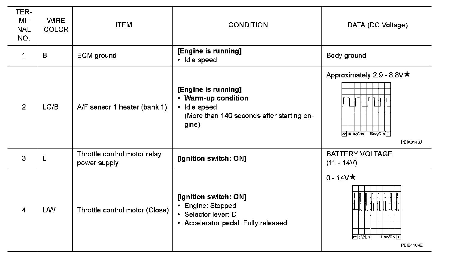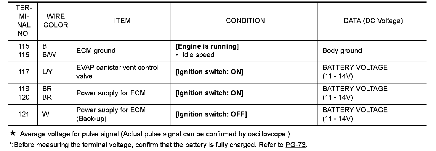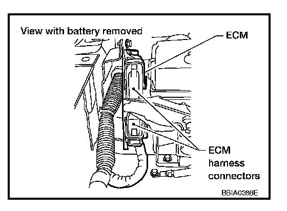 Do not use ECM ground terminals when measuring input/output voltage. Doing so may result in damage to the ECMs transistor. Use a ground other than ECM terminals, such as the ground.