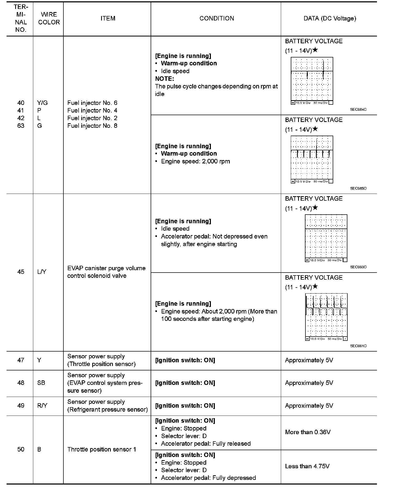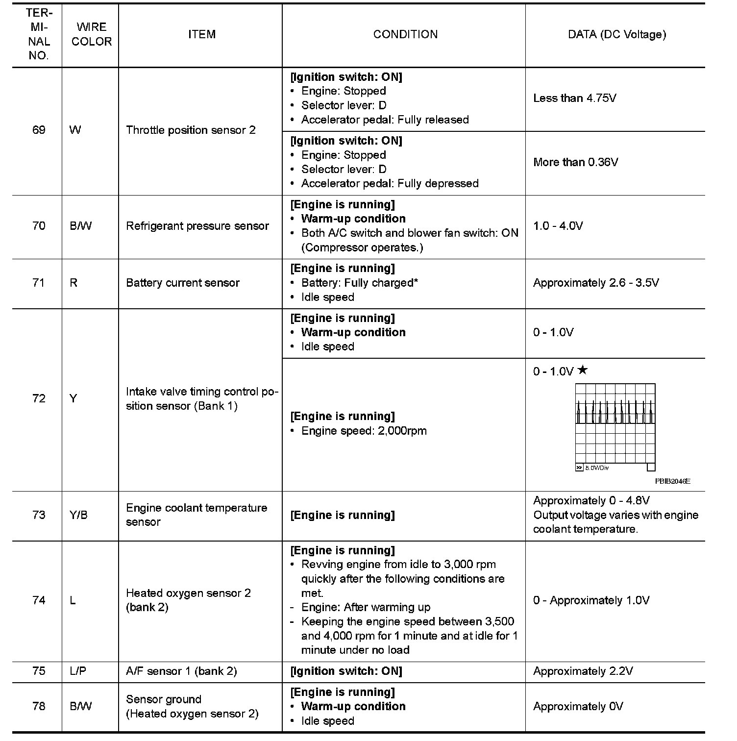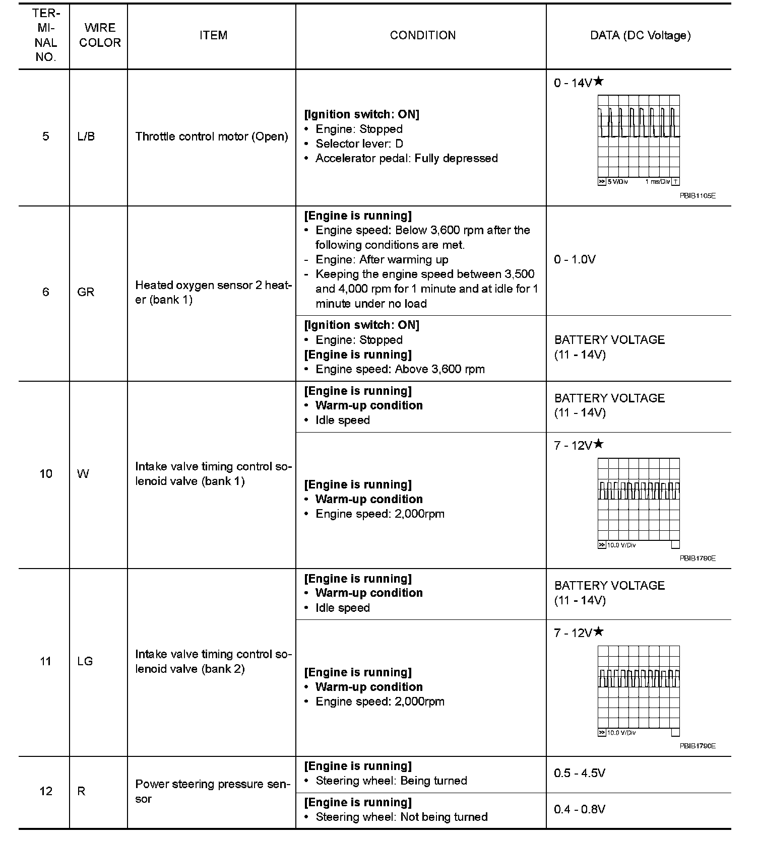 Specification data are reference values and are measured between each terminal and ground.