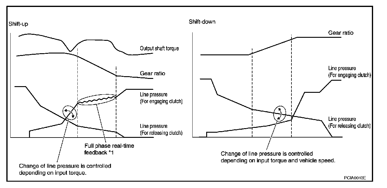 *1: Full phase real-time feedback control monitors movement of gear ratio at gear change, and controls oil pressure at real-time to achieve the best gear ratio.