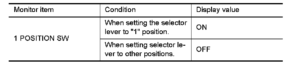 3. Read out "1 POSITION SW" moving switch selector lever to each position.