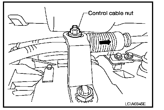 NG - Adjust control cable. Refer to Adjustment of A/T Position Checking of A/T Position, "Adjustment of A/ T Position".