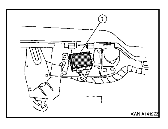 3. Remove the bolt, then remove the sonar control unit (1).