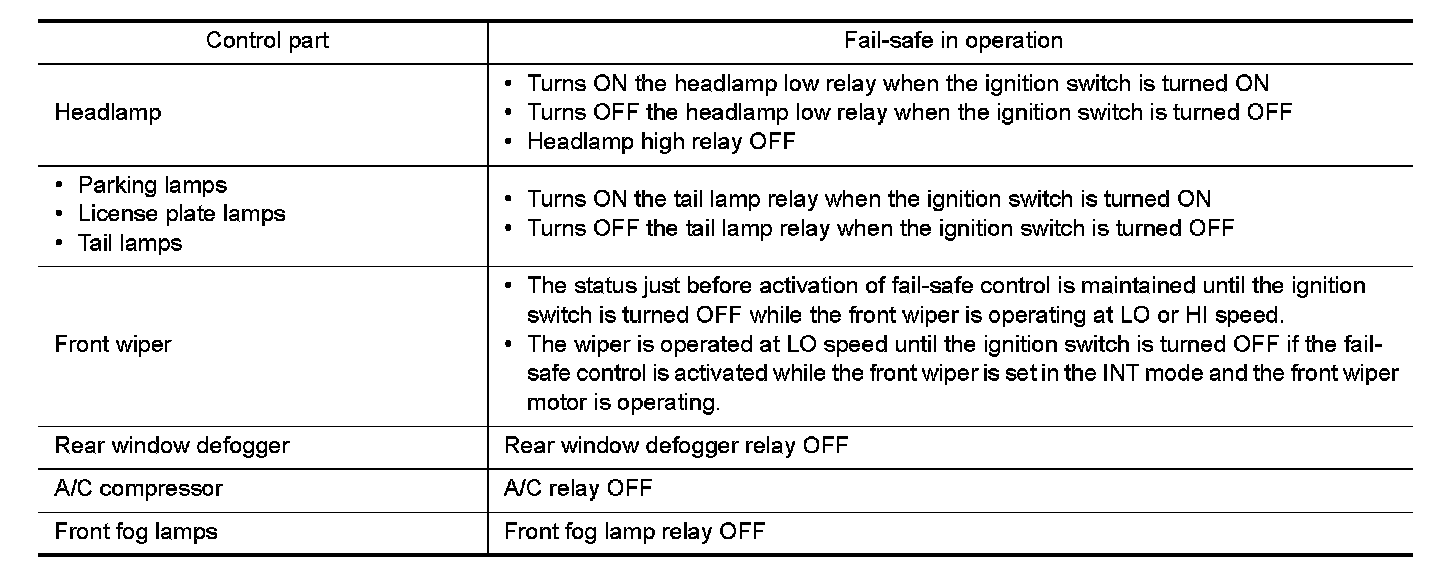 When CAN communication with ECM and BCM is impossible, IPDM E/R performs fail-safe control. After CAN communication recovers normally, it also returns to normal control.