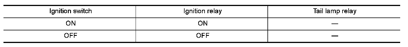 - If the ignition relay cannot turn OFF due to contact seizure, it activates the tail lamp relay for 10 minutes to alert the user to the ignition relay malfunction when the ignition switch is turned OFF.