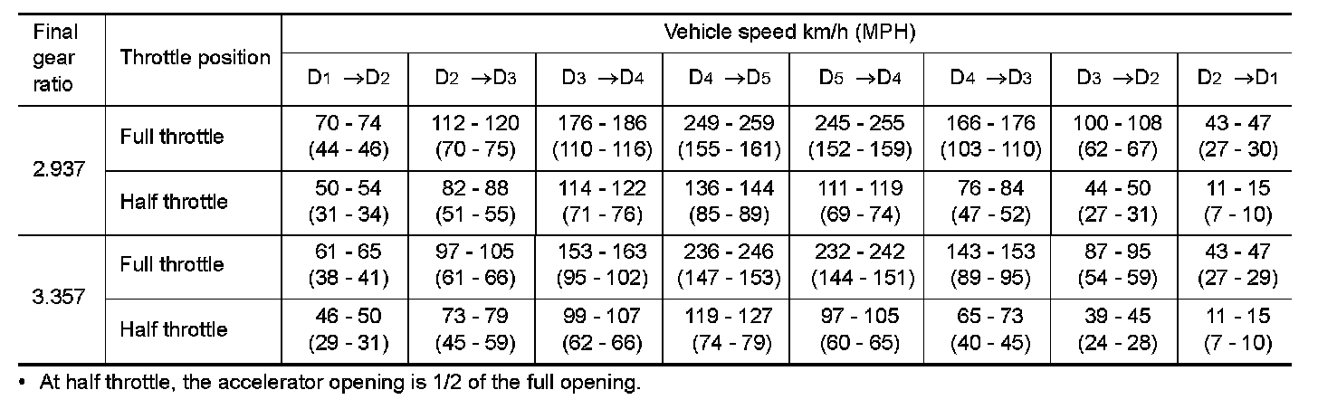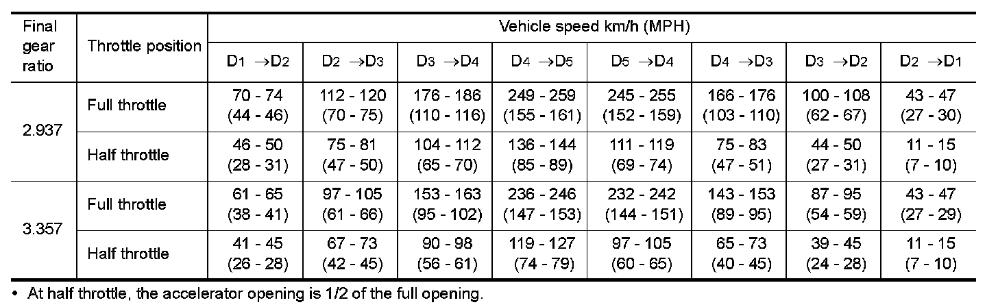 Vehicle Speed at Which Gear Shifting Occurs