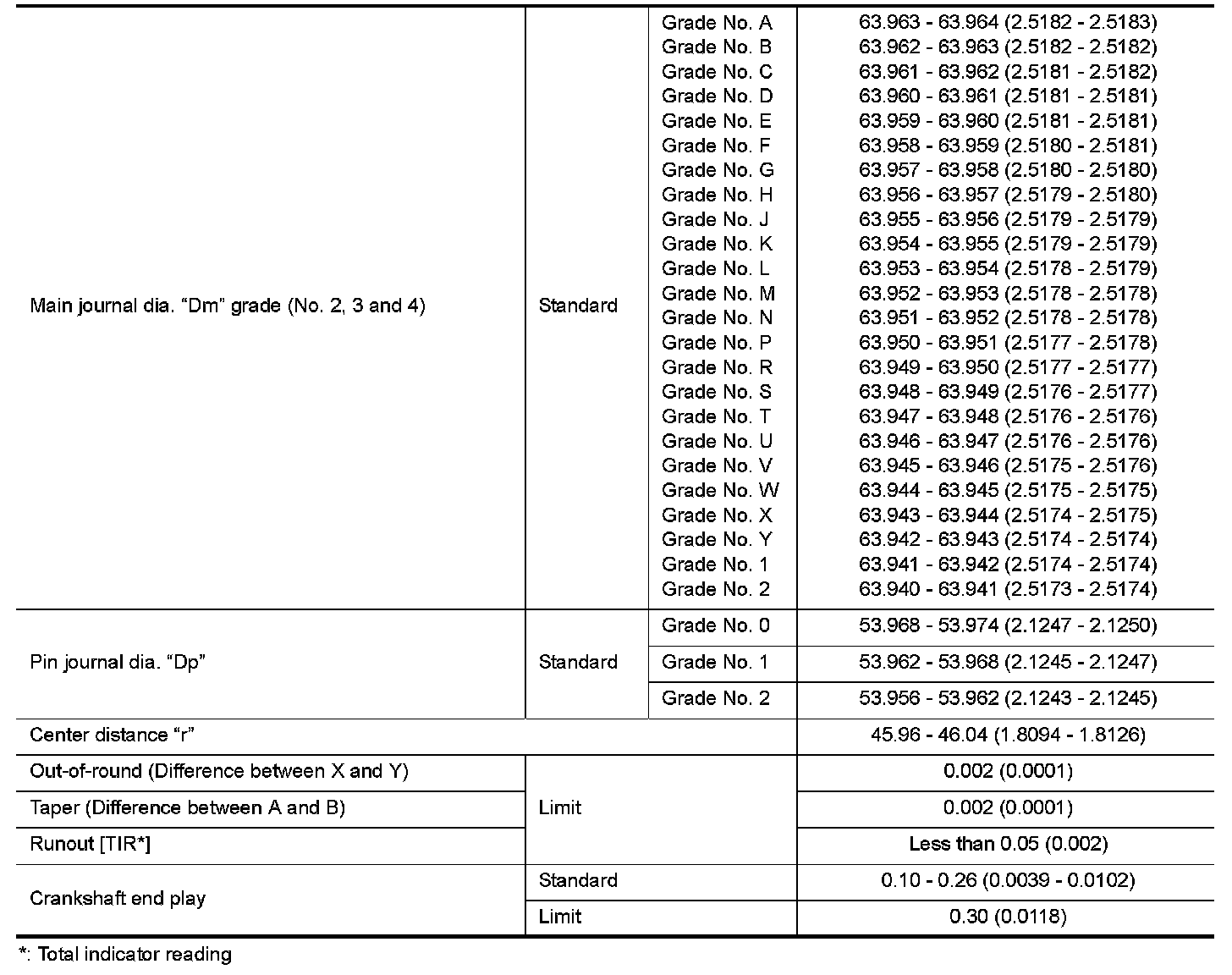 Main Bearing Oil Clearance
