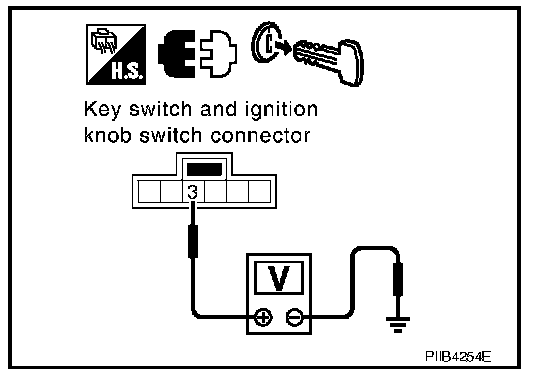 3. Check voltage between key switch and ignition knob switch harness connector M12 terminal 3 and ground.