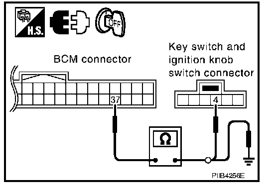 Check continuity between key switch and ignition knob switch terminals 3 and 4.