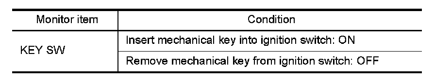 Check key switch ("KEY SW") in "DATA MONITOR" mode with CONSULT-III.