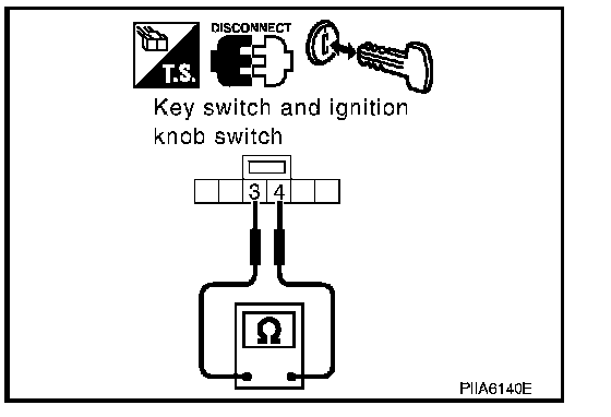 Check continuity between key switch and ignition knob switch terminals 3 and 4.