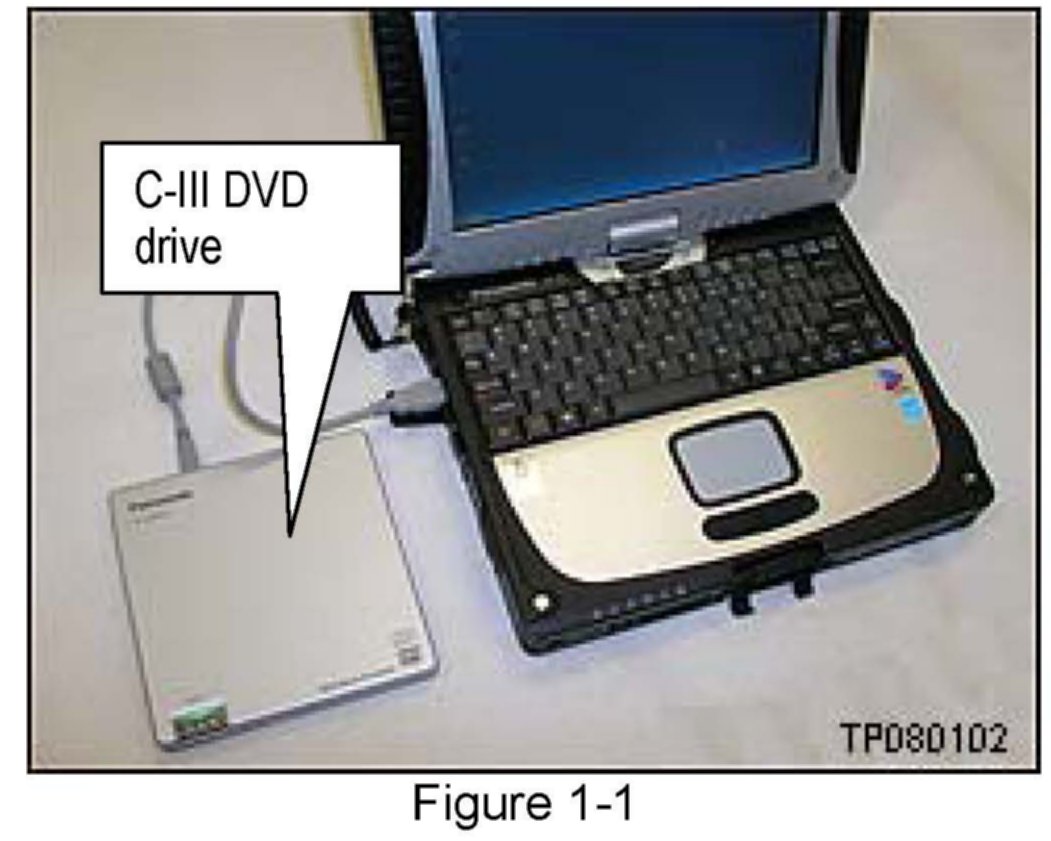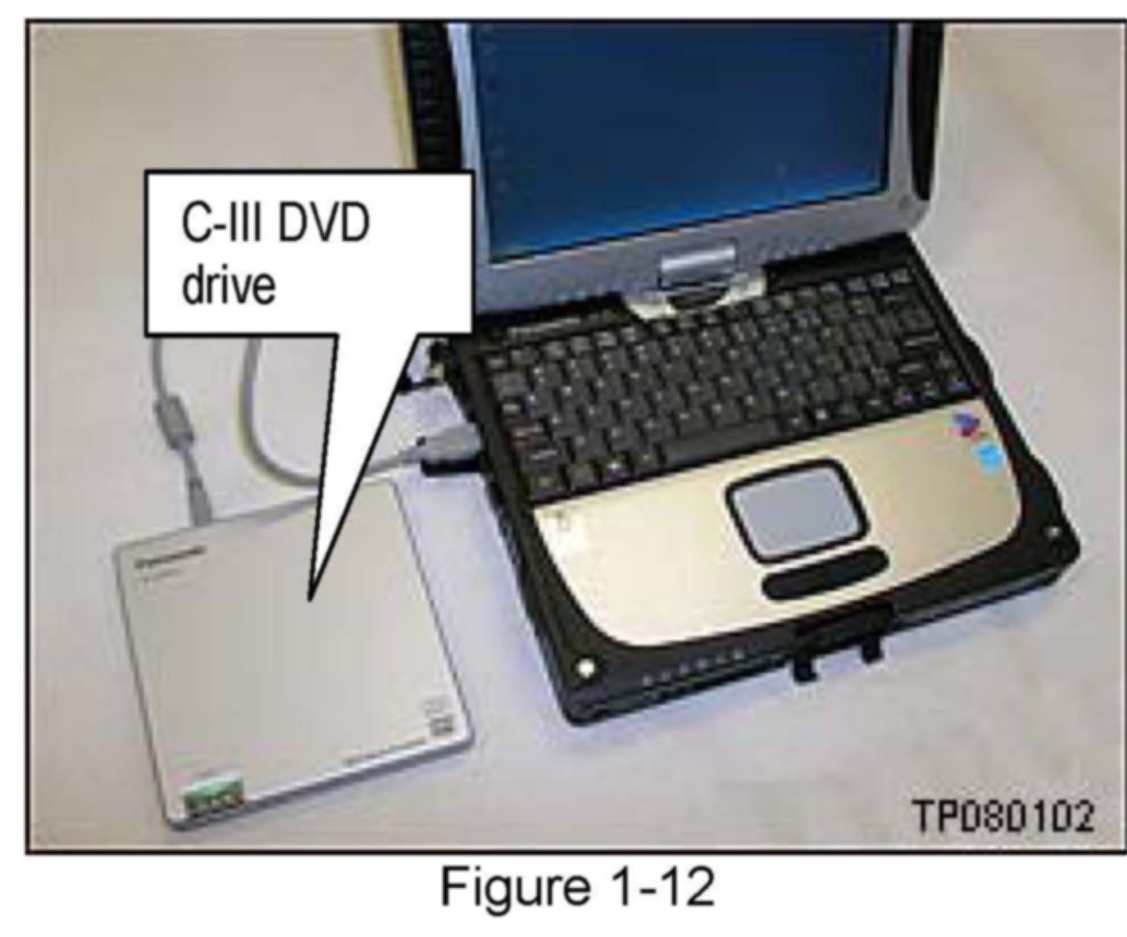 1. Connect the C-III DVD drive to the C-III computer with the USB cable.