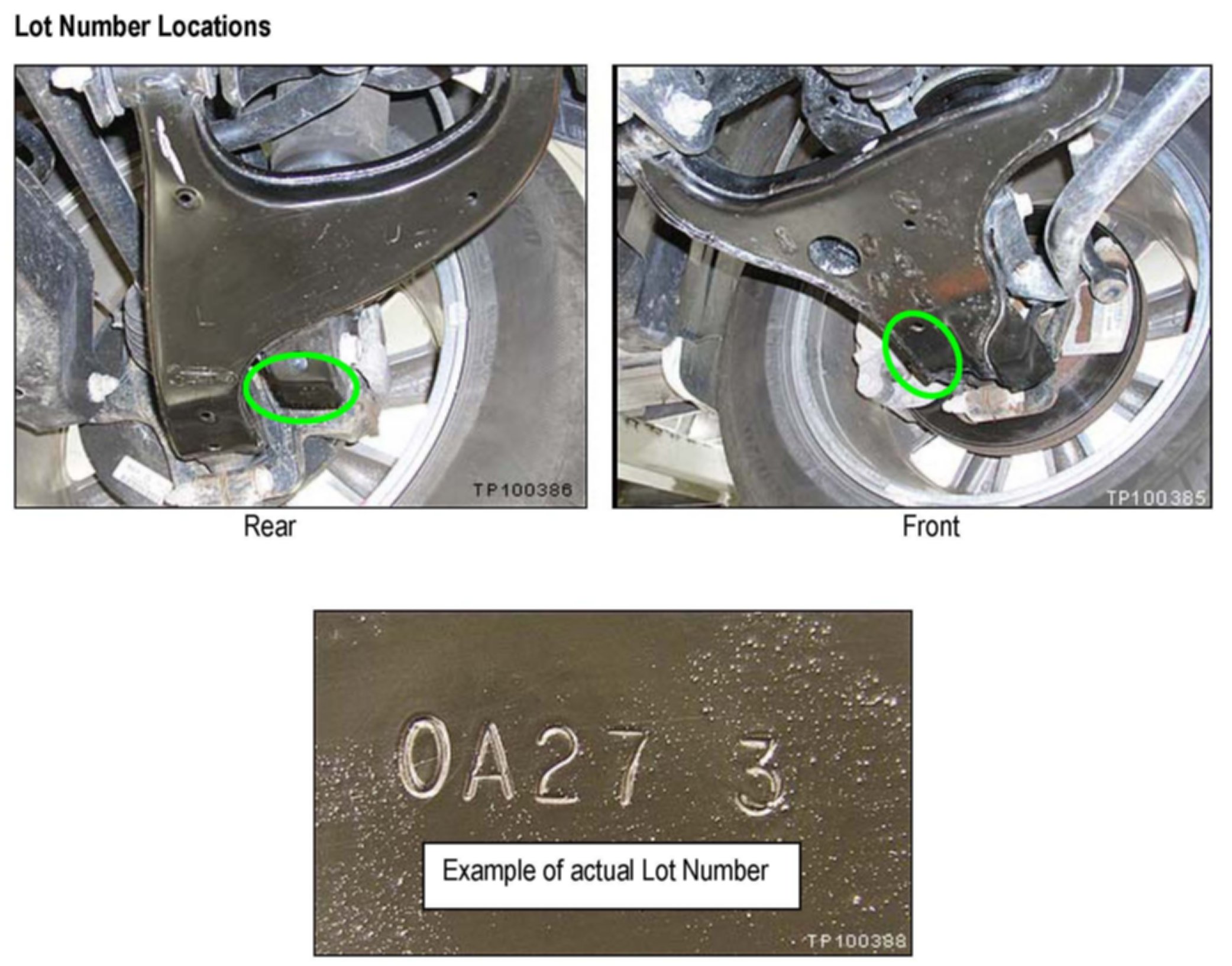 2. Locate and write down the "Lot Number" stamped on the bottom side of the suspension lower links.