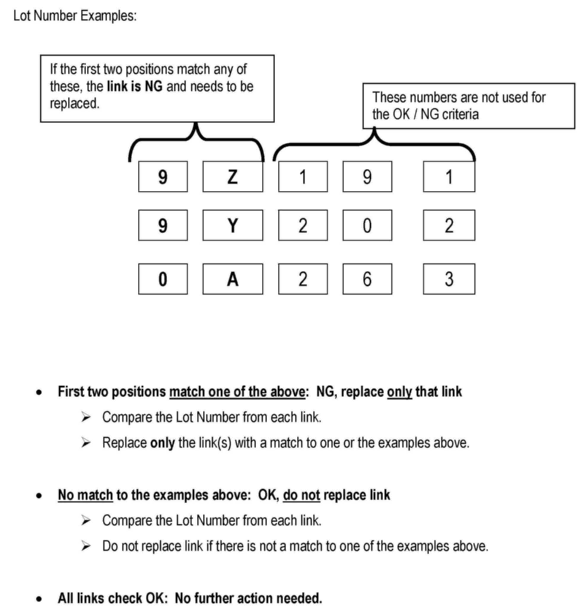 3. Compare the Lot Number of each lower link to the Lot Number examples shown below.