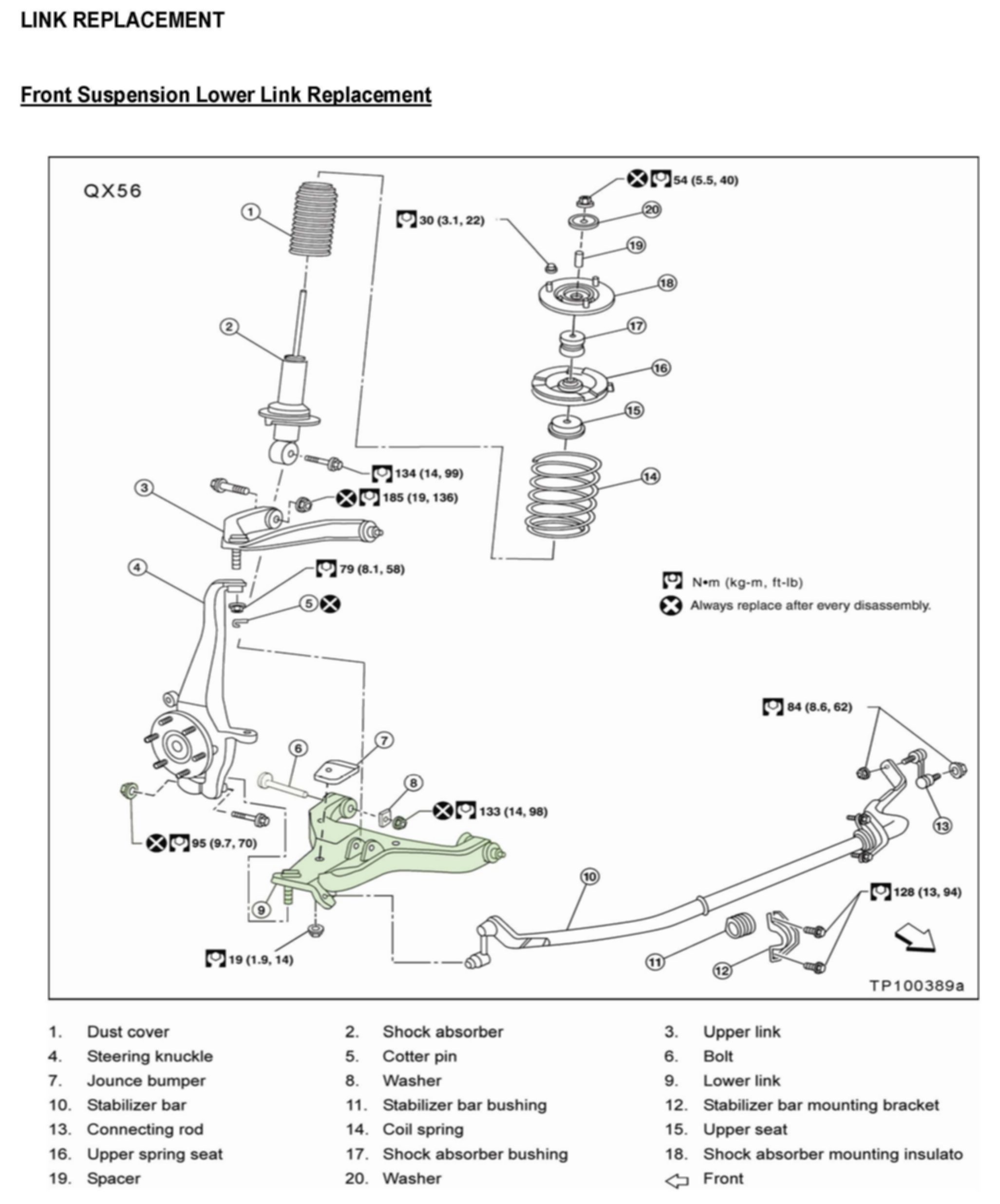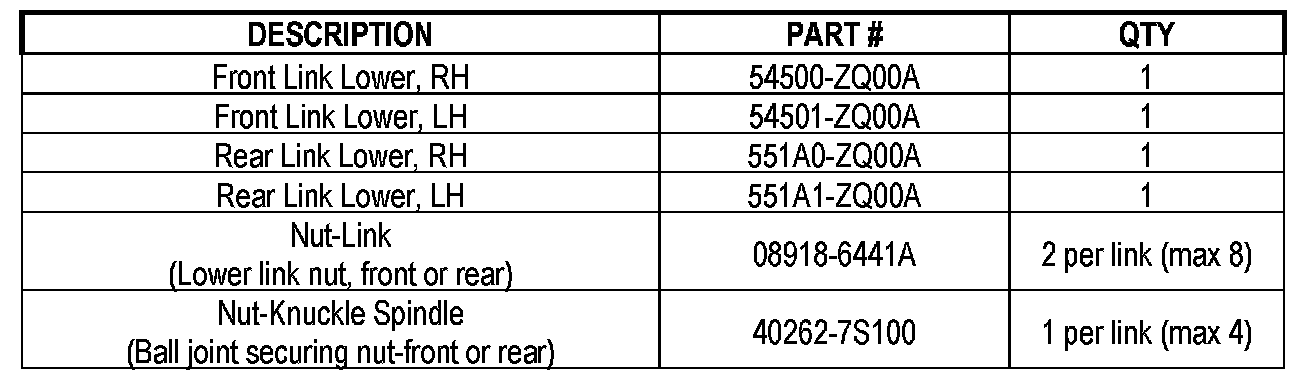 ^ Make sure to replace both lower link nuts with new ones. New nuts are listed in the Parts Information.