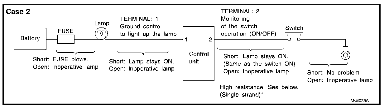 - When the switch is ON, the control unit lights up the lamp.