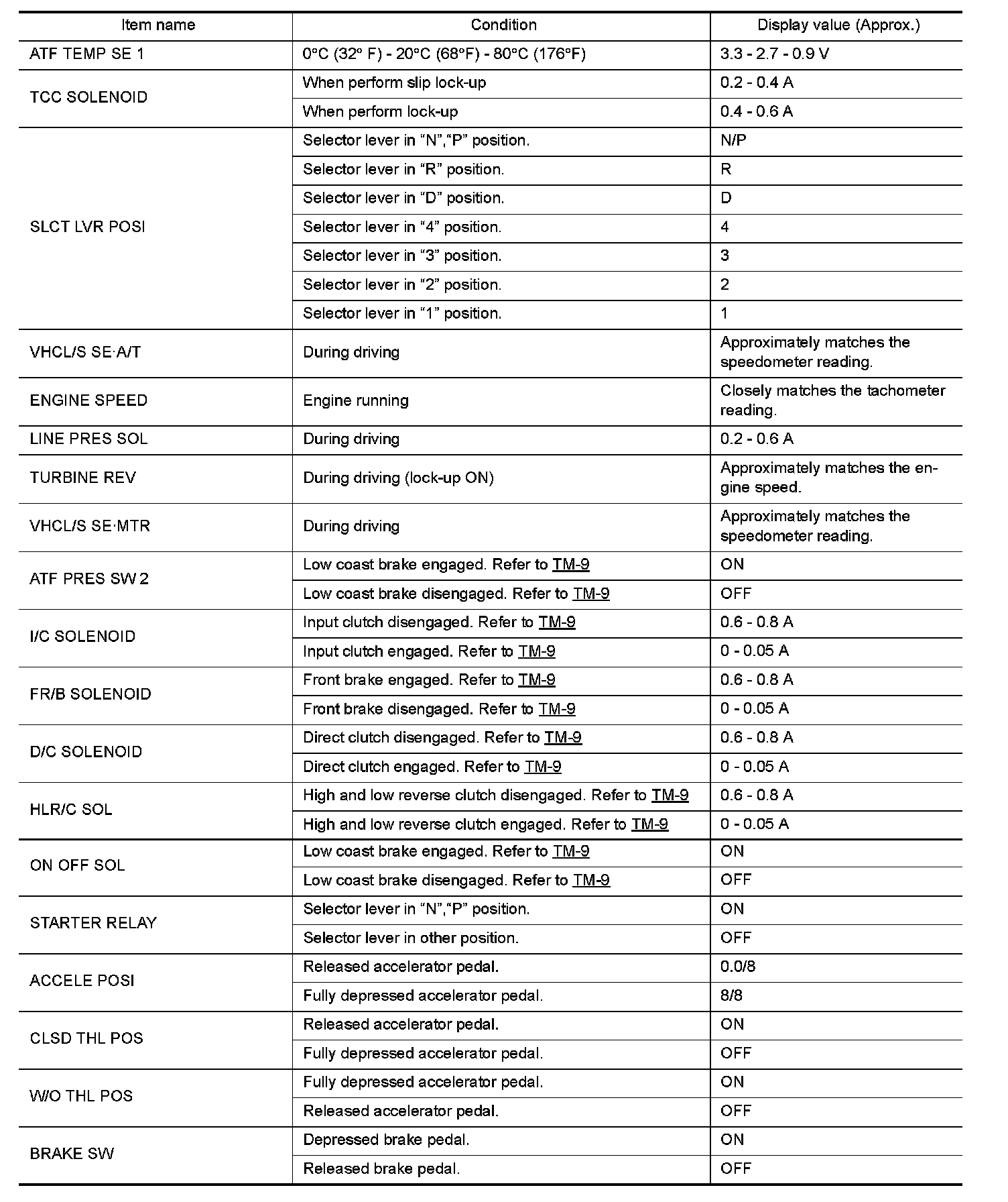 3. Display of solenoid valves on CONSULT-III changes at the start of shifting, while gear position is displayed upon completion of shifting (which is computed by TCM).