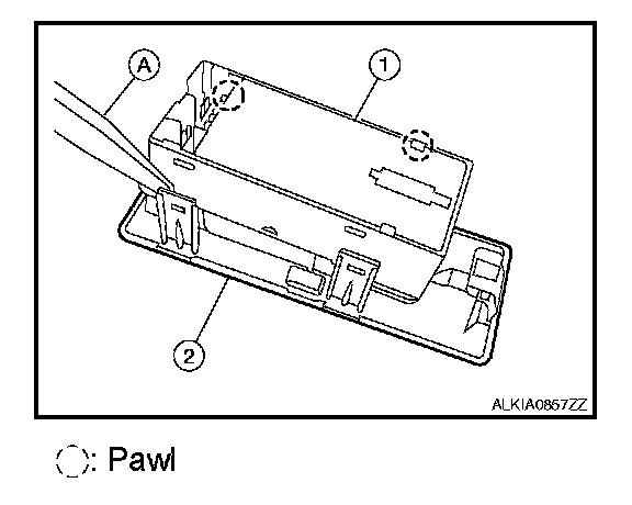 2. Using a suitable tool (A), release the tabs and remove the front power window switch (1).