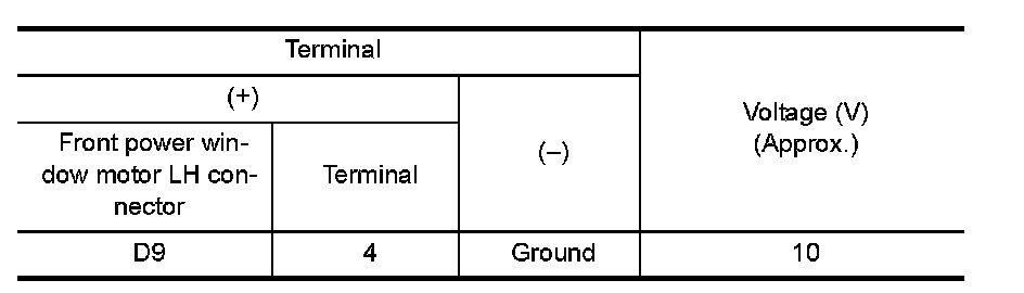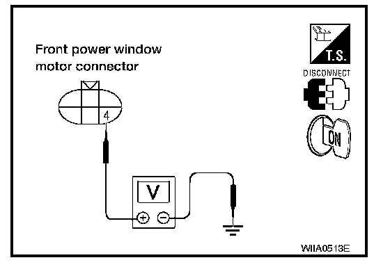 2. Check voltage between front power window motor LH connector and ground.