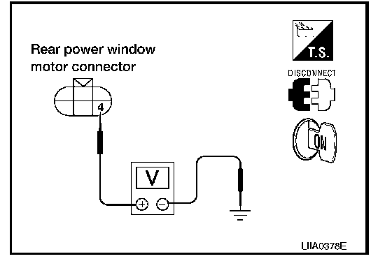 4. Check voltage between rear power window motor LH connector