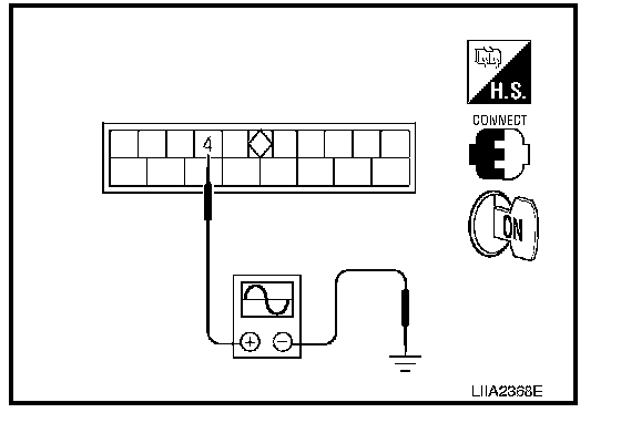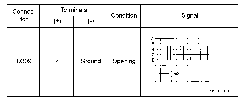2. Check the signal between rear power window control unit RH connector D309 terminal 4 and ground with oscilloscope.
