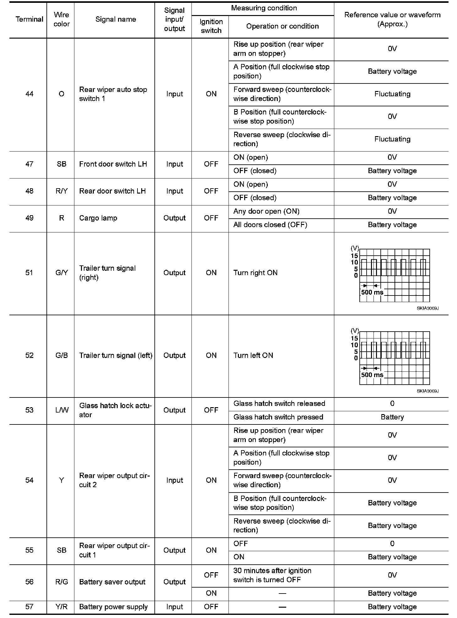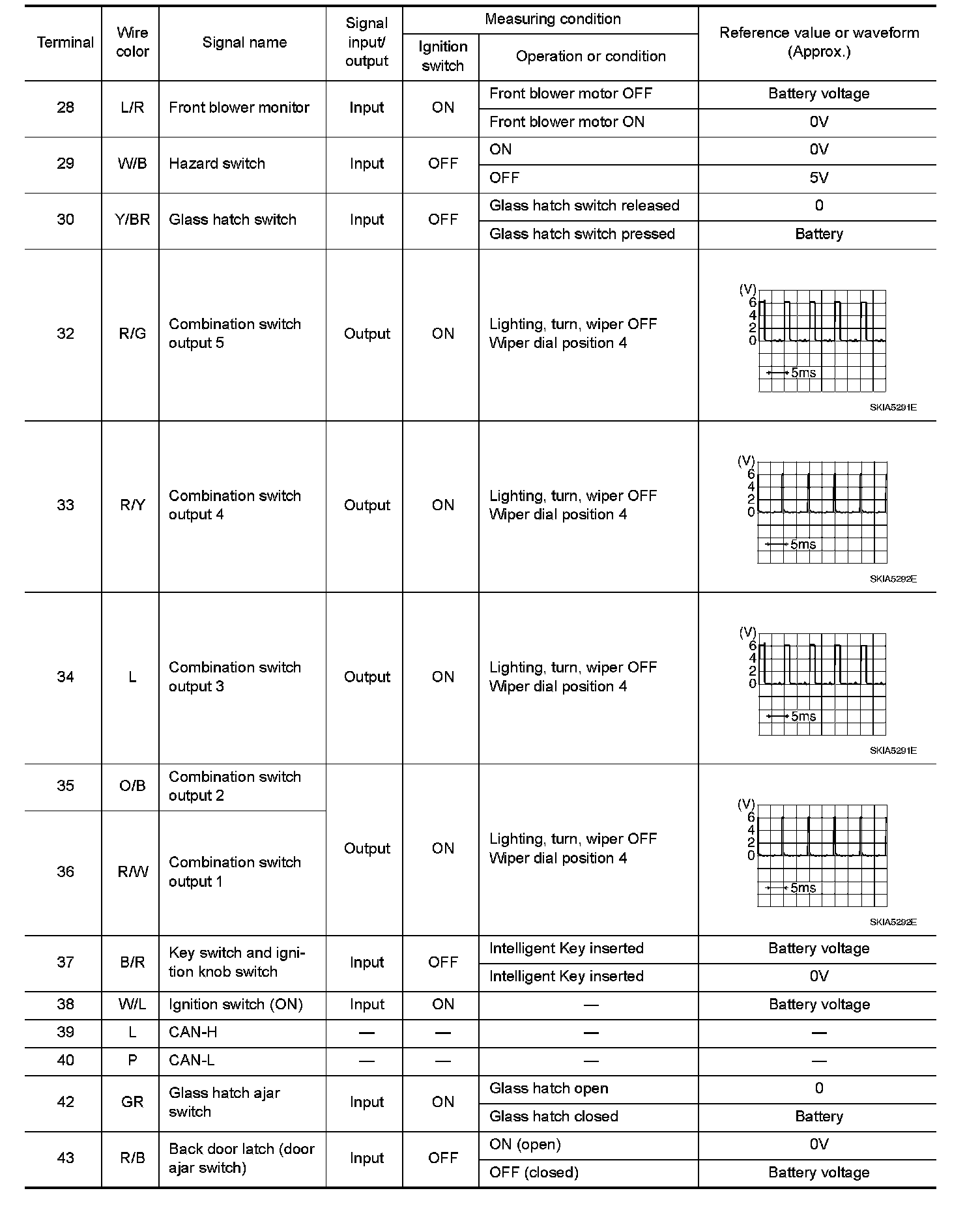 Pinout Values and Diagnostic Parameters