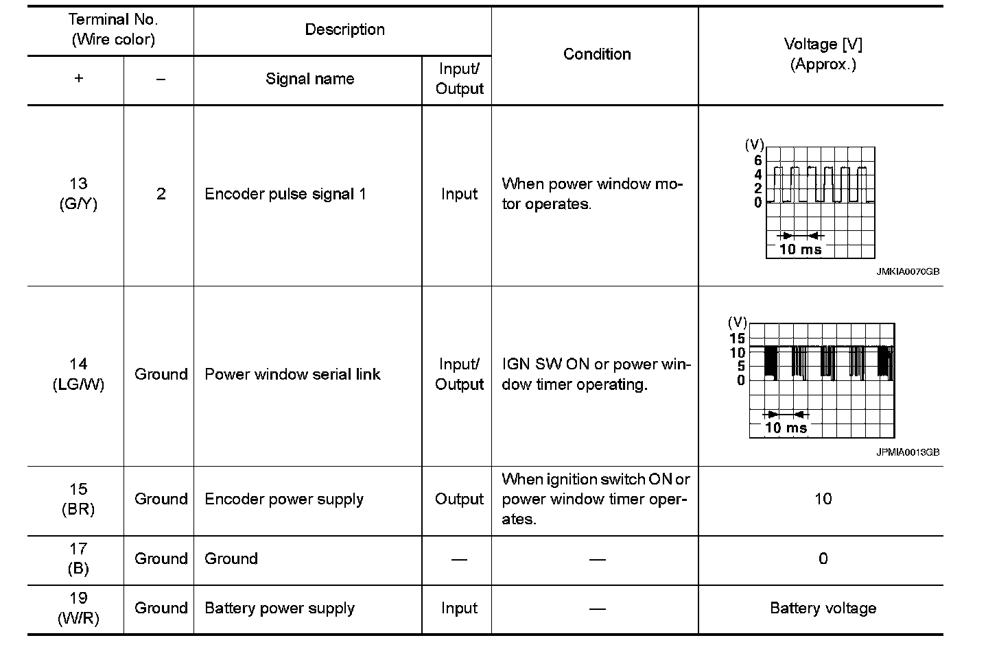 Pinout Values and Diagnostic Parameters