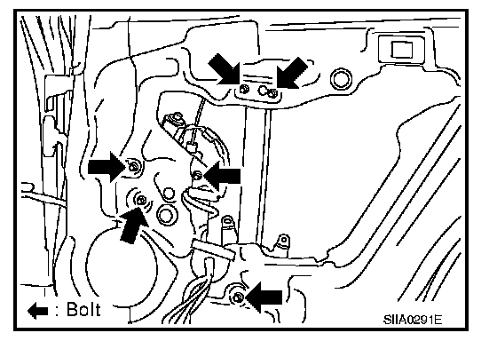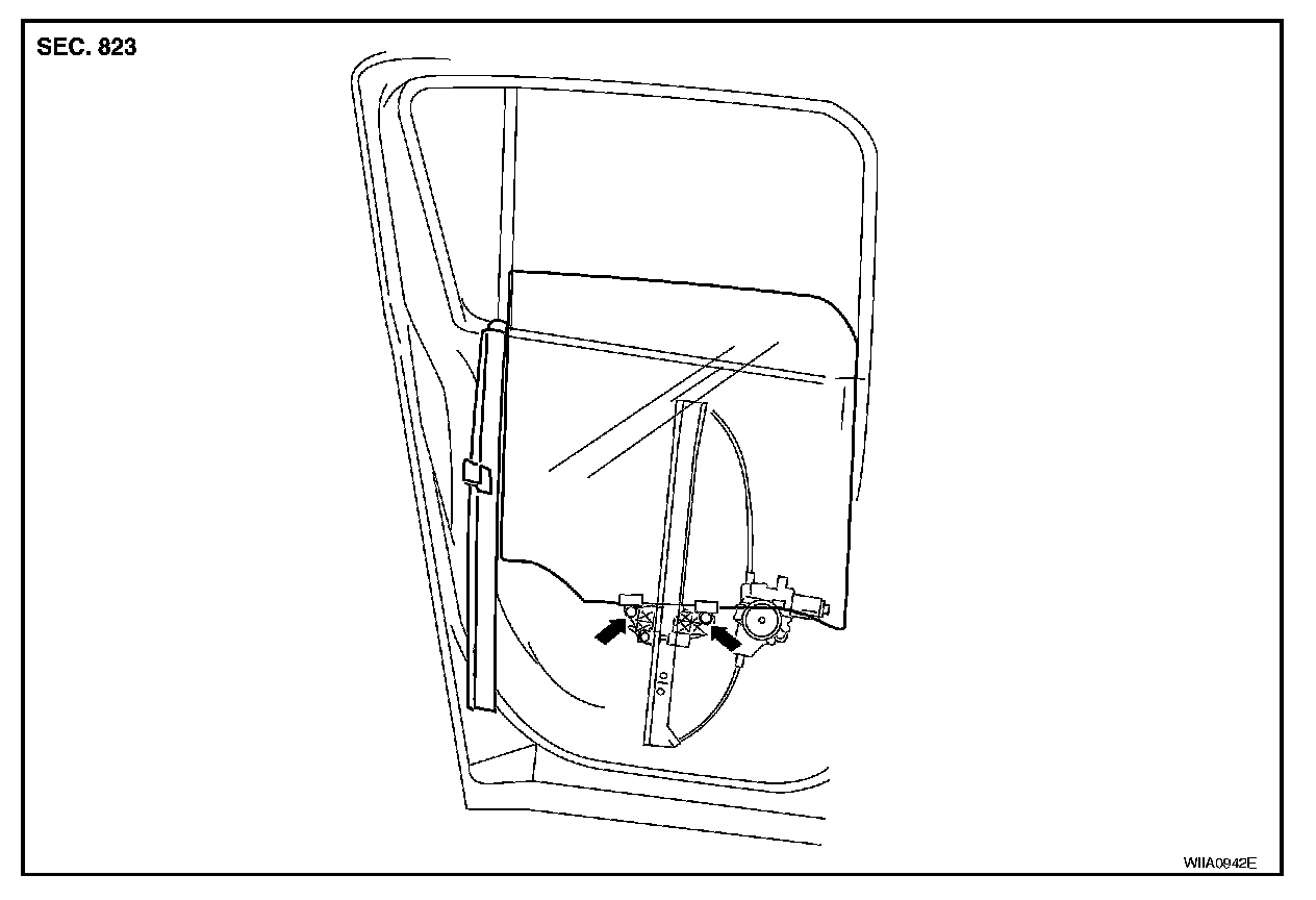 3. Operate the power window switch to raise/lower the door window until the glass bolts can be seen.