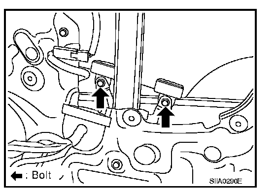 - Lower the glass slightly [approximately 10 to 20 mm (0.39 to 0.79 in)], and check that the clearance to the sash is parallel. If the clearance between the glass and sash is not parallel, loosen the regulator bolts, guide rail bolts, and glass and carrier plate bolts to correct the glass position.