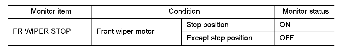 3. Check that "FR WIPER STOP" changes to "ON" and "OFF" linked with the wiper operation.