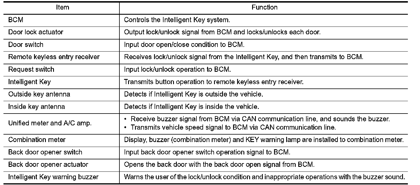 INTELLIGENT KEY SYSTEM : Component Description