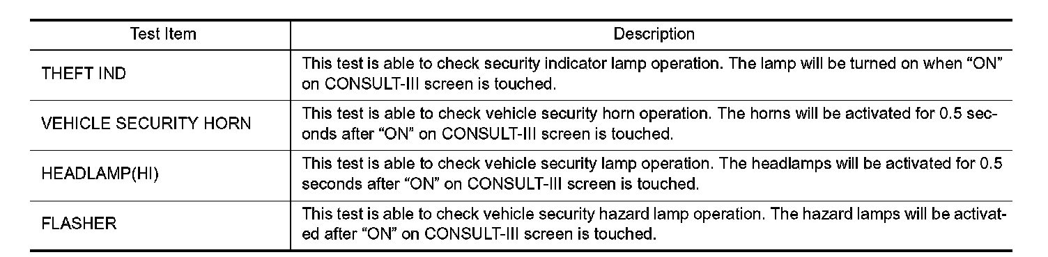 CONSULT-III Function (BCM - Theft)
