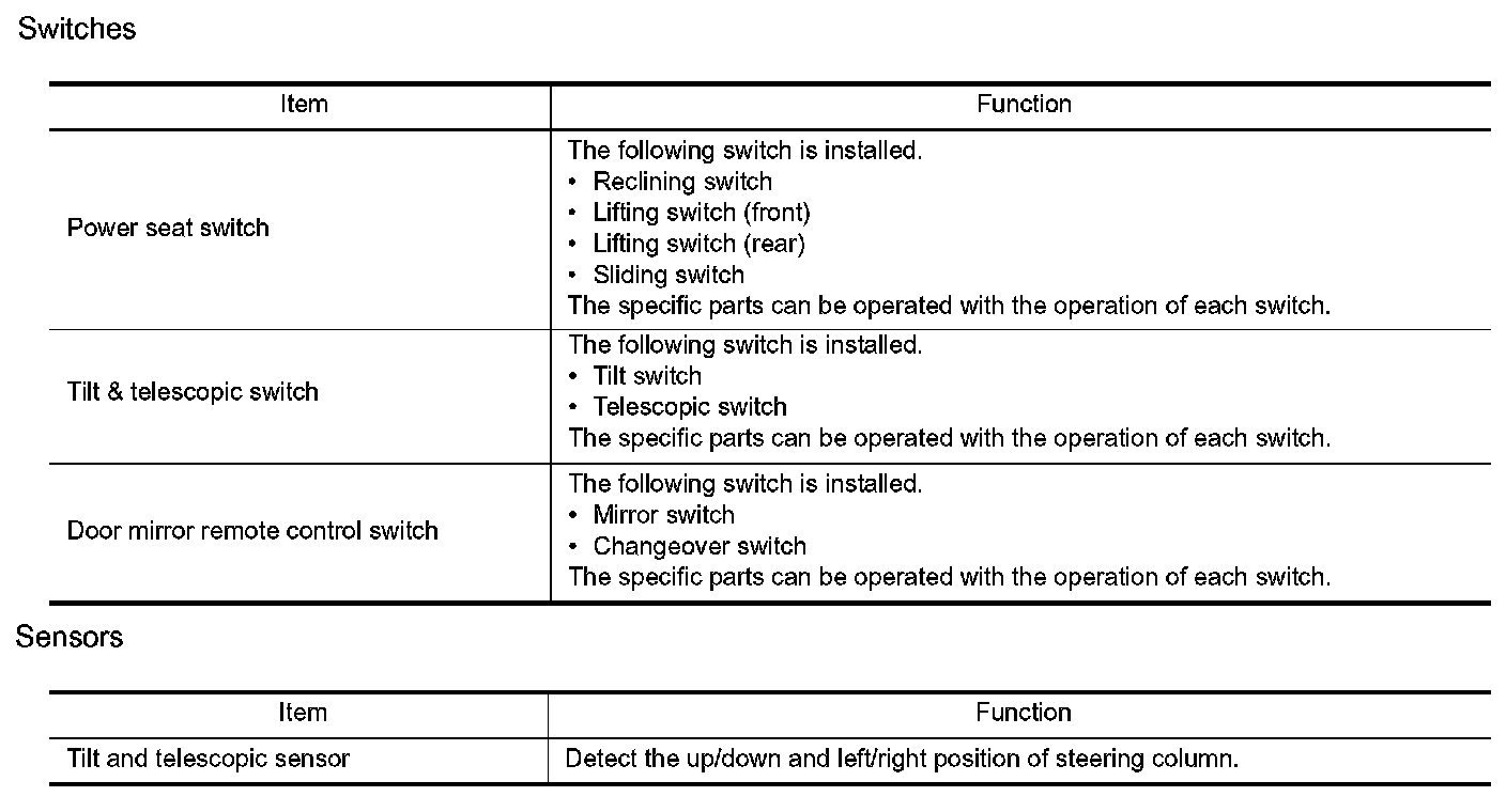 MANUAL FUNCTION : Component Description