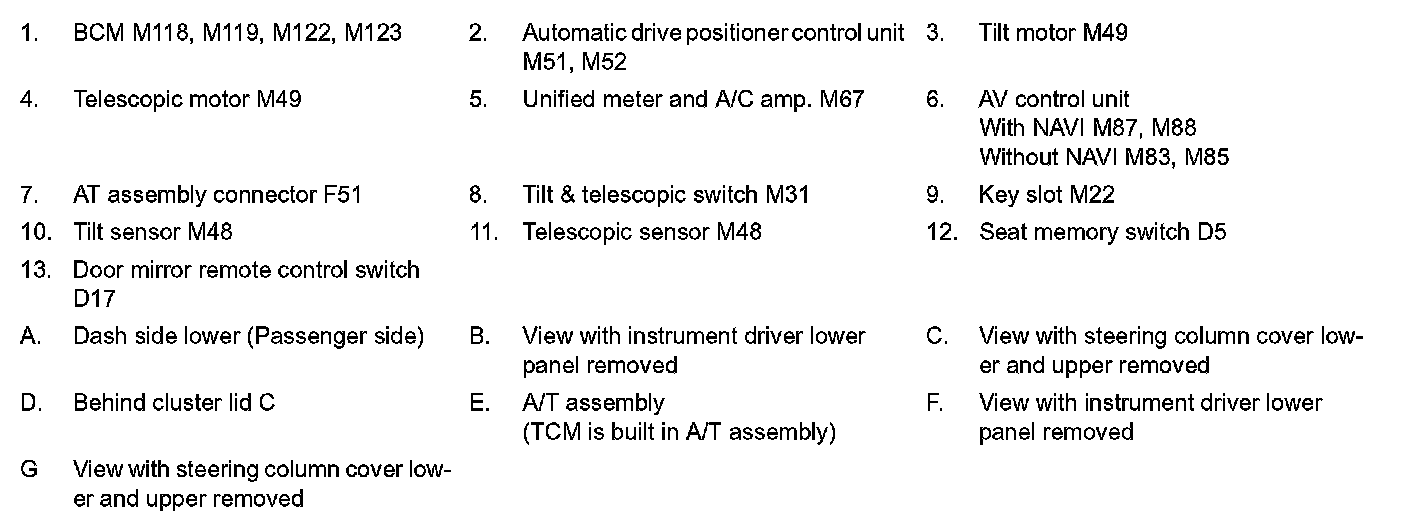 MEMORY FUNCTION : Component Parts Location