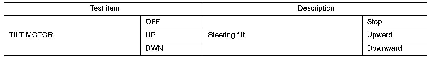 2. Select "TILT MOTOR" in "Active test" mode with CONSULT-III.