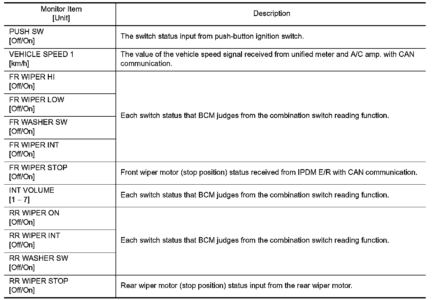 WIPER : CONSULT-III Function (