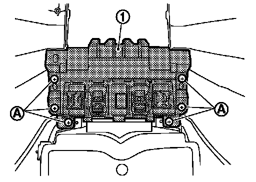 - Remove console center bracket (1) fixing screws (A).