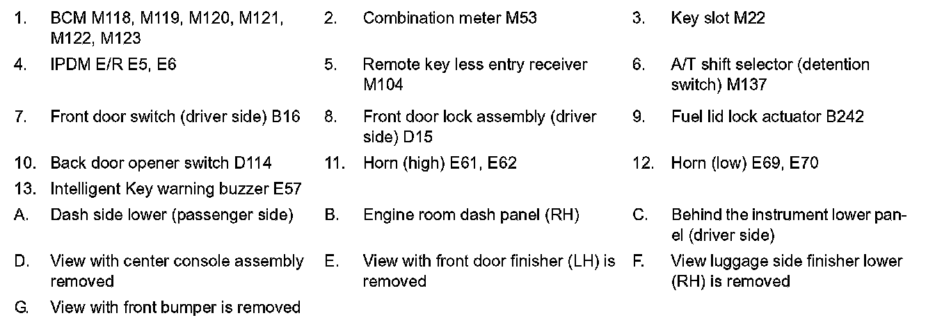 WELCOME LIGHT FUNCTION : Component Parts Location